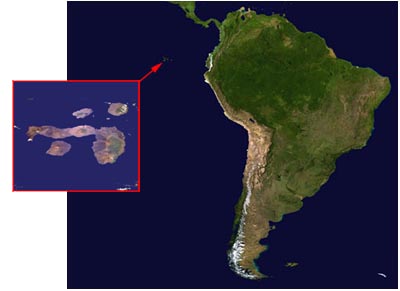 The Galapagos Archipelago is a cluster of some 13 volcanic islands and associated islets and rocks located just under the equator, about 600 miles west of Ecuador in South America. The oldest of the islands are about 4 million years old and the youngest are still in the process of being formed. Indeed, the Galapagos islands are considered to be one of the most active volcanic areas in the world.