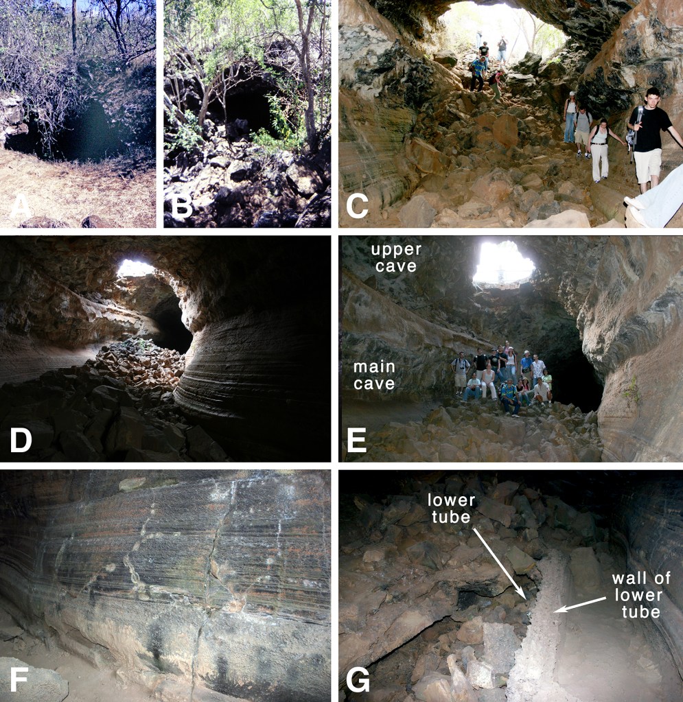 There are other lava tubes in the Santa Cruz highlands that are open to visitors, most notably Los Tunneles at Bellavista, Rancho Primicias, and Rancho El Chato 2. This later cave features a beautiful example of full-size upper and lower caves.